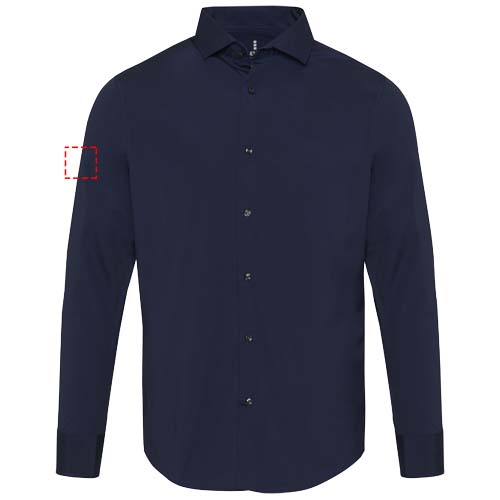 Carnelian heren poplin overhemd met lange mouwen. Moderne elegantie gecombineerd met extra draagcomfort. Gemaakt van BCI-gecertificeerd katoen met stretch, met een fijn 30-denier tweedraads gesponnen structuur voor een gladde, duurzame en luxe uitstraling. De lichte poplin binding geeft een frisse, strakke look. Regular fit voor bewegingsvrijheid en comfort. Voorzien van een klassieke rechte kraag, ideaal voor werk en casual gebruik.