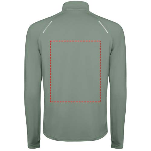 Technische raglan sweater met lange mouwen voor heren. Kraag met een halve rits en een omgekeerd ontwerp met reflecterende details. Verstevigde naden. Manchetten met duimopeningen. Reflecterende details op de achterkant. De zoom aan de achterkant is iets langer dan aan de voorkant. Warme geborstelde binnenstof.