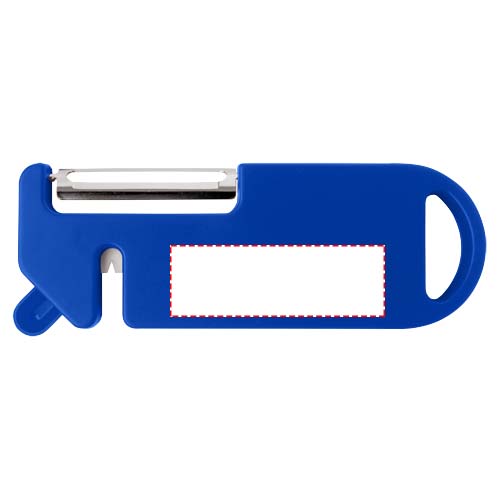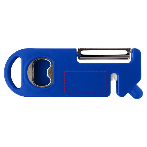 Dit multifunctionele keukengereedschap combineert vier essentiële functies in één compact ontwerp. Gemaakt van gerecycled plastic en voorzien van een dunschiller, flesopener, messenslijper en een puntig uiteinde voor het verwijderen van aardappelvlekjes. Een ingebouwd ophanggat maakt opbergen eenvoudig. Praktisch en ruimtebesparend, een veelzijdige must-have voor elke thuiskok.