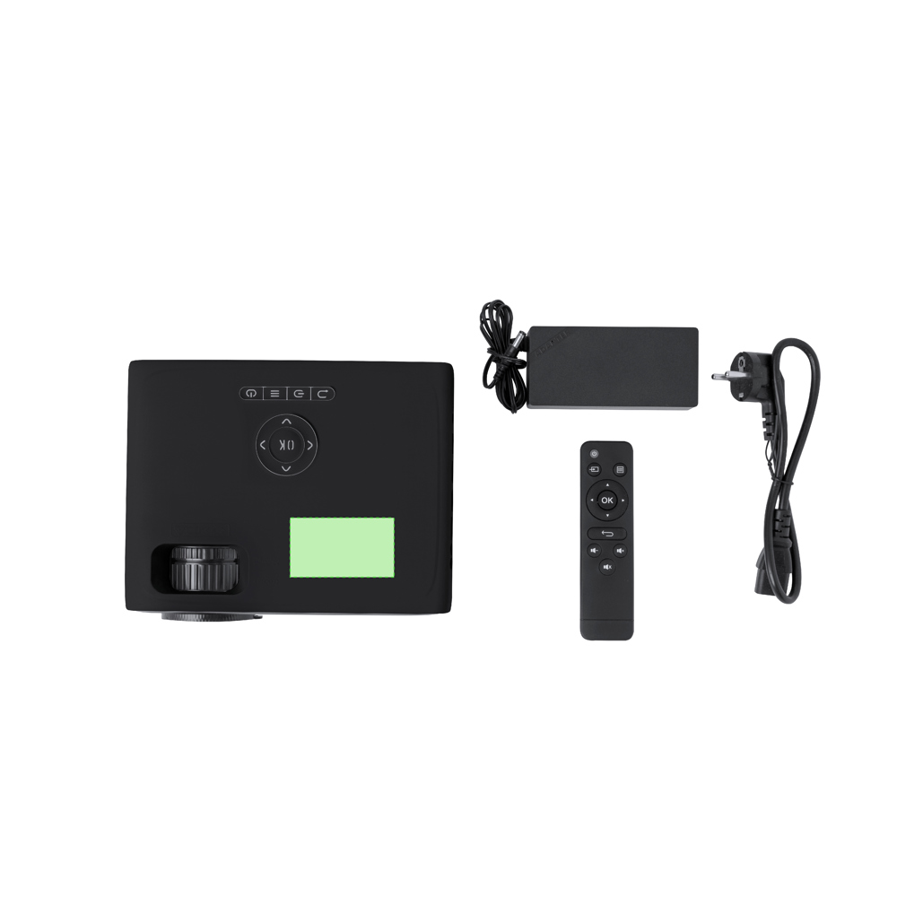 Projector met Bluetooth- en WiFi-connectiviteit die een fantastische draadloze audiovisuele ervaring biedt. Vervaardigd uit resistent zwart ABS, met focus- en hoekaanpassing voor optimaal zicht. Het heeft een vermogen van 7.000 lumen, een resolutie van 720p en is voorzien van een krachtige luidspreker van 5 W. Veel aansluitingen: 3 HDMI-uitgangen, USB-aansluiting, 3,5 mm jack-uitgang en AV-ingang. Met een slot voor Micro SD-geheugenkaarten en afstandsbediening voor gemakkelijke en eenvoudige bediening van het apparaat. AC 220V-240V voeding en gepresenteerd in een kraft designdoos.